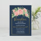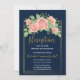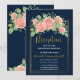 Convite de inserção de recepção floral em azul marinho dourado rosa.