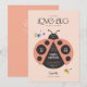 Um convite super fofo e na moda com um chá de fraldas que apresenta uma ilustração lúdica e moderna de uma joaninha com alguns sotaques de flor simples. O texto da manchete diz "um inseto de amor está a caminho" com o texto editável colocado criativamente na design. Esta é uma design perfeita para qualquer um que esteja esperando uma doce menina!