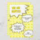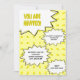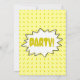 Um pop art inspirou um convite parcial com um fundo amarelo com um padrão amarelo de halftone. Personalize com detalhes do seu dentro de evento os 4 designs de ação inspirados em quadrinhos brancos. No lado oposto lê-se "FESTA!" dentro branco. Procure itens correspondentes como postagem na categoria "Pop Art" da Paperie de Jill.