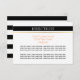 Este cartão de instruções de casamento simples, mas elegante, apresenta um padrão de listras pretas e brancas no verso. Na frente, há uma faixa preta na parte superior e sua redação está em uma faixa branca com uma faixa dourada.