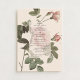 Convite romântico de casamento com uma ilustração botânica de rosa. O trabalho de arte floral suave combina elegância do eterno com beleza natural, perfeita para casais que amam flores clássicas e detalhes botânicos. Uma escolha refinada para um tema de casamento inspirada nos florais antigos, romance de jardim ou design de arte.