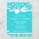 Um convite de aniversário bonito de ONEderland do inverno. Caracterizando os flocos de neve brancos em um fundo azul da cerceta com um gráfico branco do arco. O design é ilustrações/gráficos impressos plano - FITA NAO REAL.