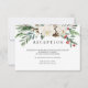 Concebido para combinar com nossa coleção de casamento Mystical Winter, este cartão elegante de recinto de recepção botânica apresenta um ramo de flores de inverno pintadas à aquarela, bagas e pinha, sobre o texto da mensagem desejada.