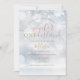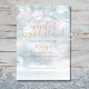Um convite de 1º aniversário de inverno ONEderland fofo com tipografia elegante e flocos de neve delicados em um fundo de geada de inverno. Criado por Thisisnotme©