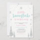 Celebre um dia especial para o seu querido com este convite fofo de um país das maravilhas de inverno! Este design apresenta flocos de neve com brilho prateado e uma frase fofa "Um pequeno floco de neve está a caminho". Convite perfeito para baby shower ou baby sprinkle com tema de inverno.