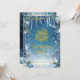 Mande desejos quentes de férias com este elegante cartão de inverno maravilhoso, com um azul festivo e design prateado cercado por pinheiros de neve e gelados delicados. Personalize com o nome da sua família, mensagem pessoal e foto para criar um cartões de natal exclusivo e memorável. Perfeito por celebrar a magia da estação com entes queridos ano após ano.