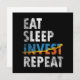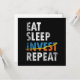 Bela e motivacional ideia de presente e design de cartão de convite para todos os profissionais e investidores dizendo "Coma o sono invista de novo". O excelente de cada comerciante gosta de investir o seu dinheiro no mercado de ações, na cripptocurrency ou no setor imobiliário. Isto é perfeito para todos os investidores.