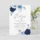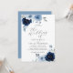 Convite para casamento floral elegante. Convite botânico moderno para casamento, com roteiro de caligrafia e flores pintadas manualmente em azul claro e marinho com azul-poeirento claro no verso do convite. Você pode personalizar o texto, o estilo da fonte, a cor e o tamanho em frente e atrás do convite. Por favor, foi livre de me contactar para encontrar itens correspondentes.