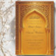 Celebre o seu casamento em estilo com este elegante convite de Casamento, que inclui a bela ouro da Via Islâmica com as palavras "Bismillah Ilrahman Ilrahim".