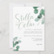 Este moderno e elegante eucalipto Sage Green convite mostra o nome das noivas e noivos em bela tipografia grande