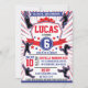 Prepare-se para comemorar a próxima festa de aniversário de Ninja com este convite temático do "Guerreiro Ninja Americano". **Este design tem um padrão de estrelas traseiras. Apresentando silhuetas azuis, brancas e vermelhas e masculinas em ação no curso de Ninja! O design traseiro também está disponível para uso. Projetado por invitecentral.com