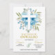 Convite Invitación de bautizo Flor azul y verde