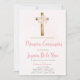 Primeiro convite à comunhão Floral Rosa, em espanhol. Invitación de primera comunión para niña