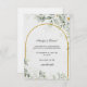 Create a beautifully coordinated wedding with this elegant green and white watercolor floral design. Soft botanical leaves, delicate white blossoms, and a refined gold arch frame come together to form a timeless and romantic aesthetic. Easily customize names, dates, and details to craft a cohesive look for your big day.