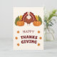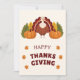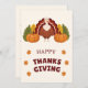 A fun and festive Thanksgiving design featuring a cute turkey, pumpkins, and autumn leaves.