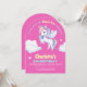 Invitation to a magical birthday party with an adorable unicorn with wings in the clouds on a rainbow background.