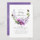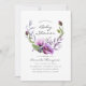 Flores violetas, lavandas e roxas em um convite para chá de fraldas de coroa pintado à mão, projetado para ser rápida e facilmente personalizado de acordo com as especificações de seu evento.