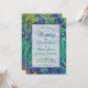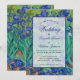 Este convite floral tem como fundo uma pintura de íris de Van Gogh (agora em domínio público). O texto está em um retângulo branco transparente. A ocasião "Casamento" e os nomes são escritos em uma caligrafia azul elegante, o resto em letras maiúsculas pequenas pretas.