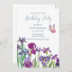 Flores íris Convite de aniversário com texto azul e aquarela melhores para festas de aniversário de meninas.