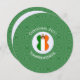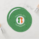 Para a sua festa de Natal, este convite redondo contém um anjo que veste a bandeira irlandesa com pincéis para os olhos. Ela voa dentro de um círculo branco e fractal de quadrados rabugentos, cercado por um fractal de quadrados verdes rabugentos. Adicione um nome e ano à frente para personalizar. Ou, mude o texto para o que quiser. As informações da festa estão no verso para os detalhes do seu evento.