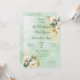 Watercolor corner bouquets in sage green, cream white, and gold on the front. Sage watercolor wash background. Couple's initials within soft gold circle on the reverse.