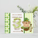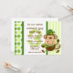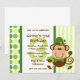 Design bonito do dia de St Patrick que caracteriza um leprechaun adorável do macaco que veste calças justas listradas verdes, o laço verde e o chapéu. Está guardarando sobre firmemente a seus trevos de quatro folhas. Fundo verde das bolinhas e da listra. Personalize-o com seu próprio texto feito sob encomenda. Original de PinkInkArt!