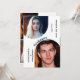 Caligrafia negra Convite à graduação de Siblings com uma imagem moderna de escrita Simples convites para a graduação de scripts com um retrato do formando na frente e 2 fotos no verso
