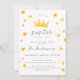 Estes simples e minimalistas convites para o chá de bebê são perfeitos para celebrar toda a família! Eles apresentam seu texto personalizado em uma tipografia moderna e um roteiro manuscrito de na moda para um título de precioso: irmãzinha no caminho! Você também pode mudar a palavra ‘irmã’ para uma ‘menina ou um 'príncipes para tornar esses convites universais. O design simples é decorado por uma coroa de aquarela fofa, de cor amarela ouro e padrão estelar perfeito para uma pequena princesa! Crie os seus próprios convites para bebês estrelados clicando no botão "Personalizar".