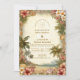 Celebrate your wedding day with timeless tropical elegance. This romantic design features lush hibiscus blooms, soft palm leaves, and painterly botanical details layered over a warm, vintage-inspired background. The refined typography and airy island palette create a sophisticated destination wedding feel that’s perfect for coastal venues, tropical resorts, or summer celebrations.