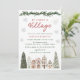 Celebrate the mom-to-be with this It Takes a Village baby shower invitation, featuring a charming watercolor village surrounded by snowy evergreens and delicate snowflakes. Accented with greenery garland and soft seasonal tones, this cozy design captures the warmth of community and the magic of winter. “It Takes a Village” is displayed in elegant script, with customizable text below for your special details. Perfect for winter or holiday baby showers, this invitation blends rustic charm and refined style for a timeless celebration.