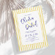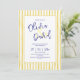 Convite de casamento em aquarela elegante. O design apresenta uma fonte manuscrita e design minimalista moderno. Convite de casamento moderno com listras verticais amarelas em aquarela com moldura dourada.