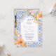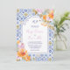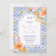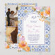 Convite Italian blue tiles bold boho floral photo wedding