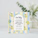 Designed for boy, girl, or gender-neutral baby showers, this invitation is ideal for garden parties, outdoor brunches, or destination-themed celebrations. The soft watercolor tones and vibrant yellow lemons add a sunny, welcoming feel to your event.
