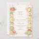 A charming Italian-inspired design featuring hand-drawn fruits and vegetables arranged in a soft market border. Lemons, tomatoes, artichokes, and pears create a warm Mediterranean feel, paired with gentle pastel tones and a light gingham backdrop. Perfect for a relaxed, European-style baby celebration with a fresh, countryside aesthetic.
