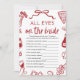 🍕 é Amore All Eyes no Jogo da Noiva - Bridal de inspiração italiana com um Torção Cheesy! 💍 seus convidados rindo com este jogo "All Eyes on Bride chá de panela" desenhado à mão — com rabiscos brancos de pizza vermelha, encanto italiano divertido, e um hetero retrorreflector romântico das ruas de Roma! ❤️ 🍕 convidados tentarão adivinhar o que a noiva vestiu, seus acessórios, ou até mesmo cor esmalte de unha — testando sua memória e quão bem eles têm prestado atenção! É a mistura final de risos, amor e competição moderada. Perfeito para festas de pizza, chás de vinhedo, ou qualquer cheio de comemoração de amore, com tema italiano!