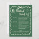 Celebrar a noiva a ser com este convite de festa de solteira rústico do acampamento apresentando um quadro verde ondulado desenhado à mão de na moda e detalhes do arco chic. A frente dá o tom com seu design minimalista e em voga, enquanto a parte de trás inclui um layout itinerário correspondente para manter os convidados organizados para as festividades do fim de semana. Perfeito para as noivas planejarem uma fuga de cabana, uma viagem de vidro ou um retiro de áreas florestais, este convite combina o encanto rústico moderno com detalhes práticos — tudo em um cartão bem projetado.