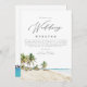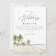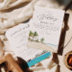 Esta carta de boas-vindas do casamento e modelo itinerário apresenta uma pintura aquosa de Cancun, praias do México e linha do horizonte com um itinerário secundário. Edite facilmente a maioria dos textos para corresponder ao seu evento,