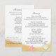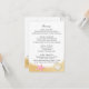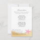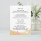 Conchas de ouro e estrelas-do-mar rosas decoram este lindo cartão de informações de convite de casamento na praia. Itinerário de um lado e acomodações do outro. Personalize o texto como preferir.