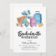 Convites de festa de solteira de férias bonitos com uma seleção de itens de viagem de aquarela incluindo malas, câmera, mapa etc. e um modelo de festa de solteira elegante que é fácil de personalizar. O itinerário final de semana está nas costas!