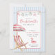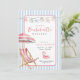 Bachelorette cor-de-rosa e azul moderna ou convite para o fim de semana de aniversário com uma simples e convidativa cadeira de praia com aquarela e guarda-chuva.