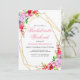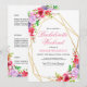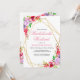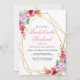 Flores em aquarela boho rosa suave, lavanda e vermelho dentro de uma moldura geométrica dupla dourada apresentam floreios botânicos. Personalize este convite de despedida de solteira com suas próprias cores e fontes ou mantenha esta tipografia popular como está para sua conveniência. Misture e combine com outros itens desta linda coleção de casamento.