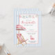 Convite de fim de semana de despedida de solteira ou aniversário cor-de-rosa e azul moderno e retrô fofo com cadeira de praia e guarda-chuva de aquarela simples e convidativo.