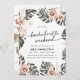 Convite Itinerário de Fim de Semana de Bachelorette Tropical. Este belo convite e itinerário tropicais é perfeito para o tema da sua festa de solteira, com folhas monstera, flores de pincel e uma fonte moderna de escrita.