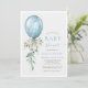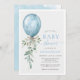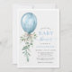 It's a boy blue balloon bow greenery baby shower invitation.