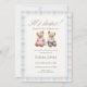 Convite Its Twins Pastel Plaid Teddy Bear Baby Shower