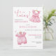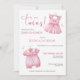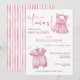 This charming pink baby shower invitation combines a mix of calligraphy script, serif, and sans serif fonts with the words "It's Twins. amd two adorable pink baby outfits. The reverse side showcases pink and white watercolor stipes. To customize the invitation, simply click "Personalize This Design" and enter your details. Zazzle will handle the rest. This beautiful invitation is part of the It's Twins Pink and White Stripes Baby Shower Collection