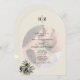 Este convite de casamento elegante em marfim e creme apresenta uma silhueta arqueada moderna, um design de foto suave, tipografia de monograma refinada e detalhes delicados de ramo de oliveira para um visual atemporal inspirado no Mediterrâneo.