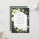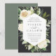 Nosso convite para o casamento de Ivory Bloom rodeia seus detalhes do dia do casamento com uma estrutura geométrica moderna de verde-coloração d'água pintada, folhagem botânica, rosa branca e flores de pénia.