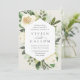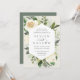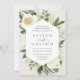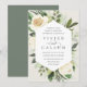 Nosso convite para o casamento de Ivory Bloom rodeia seus detalhes do dia do casamento com uma estrutura geométrica moderna de verde-coloração d'água pintada, folhagem botânica, rosa branca e flores de pénia.