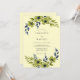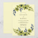 This design showcases a soft ivory background embellished with elegant watercolor florals in shades of sage green and deep navy blue. The delicate anemone blooms and flowing foliage create a serene, airy atmosphere. Rich indigo leaves provide a striking contrast against the pale canvas, evoking a sophisticated and refined aesthetic for a seasonal event.